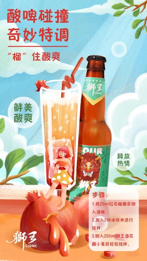 據調查顯示,2021年精釀品類銷售增長迅速。以酸啤品類為例,2021年其在某電商平臺銷量增長超90%。基于行業洞察與戰略布局,今年年初燕京啤酒迅速出擊,以精釀子品牌獅王為主體率先推出酒花酸小麥啤酒。 “獅王”是燕京啤酒布局高端精釀賽道的子品牌。從去年亮相后,已推出世濤、酒花酸小麥兩款啤酒,在未來還會有更多精釀產品與消費者見面。隨著獅王精釀系列產品的推出以及場景化、多元化、年輕化營銷戰略的開展,隨性、自信、高端的“獅王氣質”正在走進消費者內心。 聚焦場景式營銷 時尚、好玩、潮味十足 獅王酒花酸小麥源于有著400多年歷史的柏林酸小麥(Berliner Weissbier),這種擁有溫和的酸味與輕微的果香的啤酒,被稱為“北方的香檳”,在釀造過程中采用了酵母與乳酸菌協同發酵的“混釀”(mixed fermented)技術,讓酒體意外地產生了一種沁人心脾的酸感。經典的柏林酸小麥,本身就有一種傳統的喝法——搭配各種果汁飲用,這既可以調節啤酒的酸感,也可以讓酒飲的味道更富有層次。 獅王酒花酸小麥承襲經典,獨具創新,采用低溫萃取酒花工藝,為本身通透的酸感融合了酒花的柑橘類香氣。燕京深入挖掘酸啤品類文化及傳統趣味喝法,并在此基礎上大膽創新,以“酸啤碰撞,奇妙特調”為話題,為消費者營造了一個新奇且發散式的場景——你可以利用一支獅王酒花酸小麥與果汁、冰激淋、氣泡水等調配出任何你能想到的創意酒飲。這種提供方向但不限定消費者想象的場景式營銷,為產品和消費者都提供了更大的想象空間。