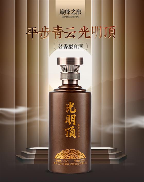 人生得意時,共赴「光明頂」之約 眾所周知,好醬酒因其復雜的工藝、漫長的生產周期、極低的出酒率,價格一直居高不下。隨著醬酒熱潮的興起,各種宴請與聚場合中,醬酒逐漸占據主流,但在良莠不齊、競爭激烈的醬酒市場中,想要挑選到一款價格適中、品質卓越的好酒,并不容易。 「光明頂」醬酒主要針對商務宴請、年會、升學等場景打造,在合理的價格體系之下,以“醇厚綿柔、回味悠長”的酒體、“空杯留香持久”的特性,以及好喝、難醉、易醒的舒適飲用體驗,帶來遠超價格的非凡品飲價值。在鶴灰帶棕的簡約高雅設計風格之上,加入寓意平步青云的傳統祥云紋樣,傳遞美好祝愿,更可為企業、個人等各類客戶進行專屬定制,滿足多種形式的宴請需求。