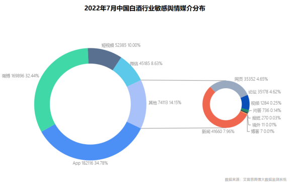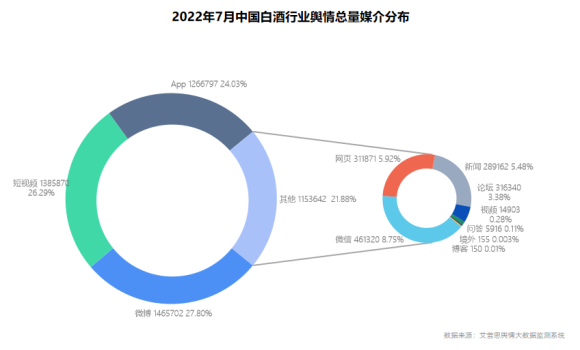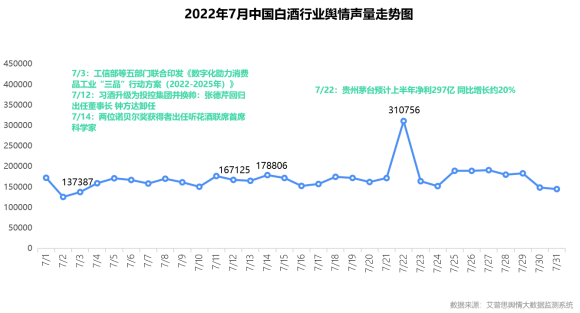 一、 2022年07月白酒行業發展簡報 1..1 國家:多部門加快推動白酒行業建設管理 六部門聯合禁售“軍”字號煙酒 7月6日,中央軍委后勤保障部、中央網絡安全和信息化委員會辦公室、公安部、國家市場監督管理總局、國家煙草專賣局、國家知識產權局等6部門聯合發布了關于禁止銷售“軍”字號煙酒等商品的通告。通告提出,嚴禁線上線下銷售“軍”字號煙酒等商品;嚴密組織“軍”字號煙酒等商品監管。 1.2 行業:新國標促進白酒行業新發展 國家標準化管理委員會發布《白酒質量要求 第2部分》國標 近日,國家標準化管理委員會發布公告,GB/T 10781.2-2022《白酒質量要求 第2部分:清香型白酒》國家標準已于2022年7月11日正式發布,代替GB/T 10781.2-2006《清香型白酒》,實施日期為2023年2月1日。本次修訂主要變化內容包括:更改了清香型白酒定義、刪除了產品分類、更改了感官要求、更改了理化要求、刪除了衛生要求。 國家標準化管理委員會正式發布四項酒類國標 7月15日,國家市場監督管理總局(國家標準化管理委員會)發布公告,《白酒分析方法》《清香型白酒》《固液法白酒》(第1號修改單)《液態法白酒》(第1號修改單)四項國家標準正式發布。 3.3 地方:多地推出針對性措施+ 四川、重慶:川、渝協作打造世界白酒文化旅游目的地 貴州:貴州立法保護赤水河白酒生產環境 山西:山西呂梁推進釀造原糧基地建設 二、 2022年07月白酒行業輿情態勢 2.1 行業輿情聲量/情感分布 艾普思輿情大數據監測系統顯示,7月,涉及白酒行業的輿情聲量為5,272,011篇次,日均聲量達170,065篇次。其中,聲量極值出現在7月22日(單日聲量310,756篇次),主要受《兩位諾貝爾獎獲得者出任聽花酒聯席首席科學家》《習酒集團成立,貴州國資委100%控股》等報道影響。 2022年7月中國白酒行業輿情聲量走勢圖 從月度輿情聲量峰值來看,聲量波動涉及“半年報”“酒企競合”“IP合作”“國標”“碳尋”“老酒”等熱點話題。 7月,系統監測到與白酒行業高度相關的敏感輿情聲量523,695篇次,占比達9.93%,涉及話題“瀘州老窖白酒冰飲營銷引發爭議”“高粱投料口有破損,古井貢酒被要求限期整改”、“仁懷一白酒企業因私自添加中藥材生產配制酒被罰10.01萬”等。 2022年7月中國白酒行業輿情情感分布 2.2 行業輿情聲量來源/媒介分布 7月,白酒行業輿情聲量來源中,占比最高的媒介為微博,達27.80%,輿情聲量為1,465,702篇次;其次為短視頻,輿情聲量達1,385,870篇次,占比26.29%;排名第三的是APP,輿情聲量達1,266,797篇次,占比24.03%;其他媒介中,微信、網頁、新聞、論壇等媒介的總占比達21.88%,輿情聲量為1,153,642篇次。 2022年7月中國白酒行業輿情總量媒介分布 7月,白酒行業敏感輿情聲量來源中,占比最高的媒介為APP,達34.78%,輿情聲量為182,116篇次;其次為微博,輿情聲量達169,896篇次,占比32.44%;排名第三的是短視頻,輿情聲量達52,385篇次,占比10.00%;排名第四的是微信,輿情聲量達45,185篇次,占比8.63%;其他媒介中,新聞、網頁、論壇等媒介的總占比達14.15%,輿情聲量為74,113篇次。 2022年7月中國白酒行業敏感輿情媒介分布 2.3 行業輿情典型報道 7月,白酒行業輿情典型報道有《習酒升級為投控集團并換帥:張德芹回歸出任董事長 鐘方達卸任》、《兩位諾貝爾獎獲得者出任聽花酒聯席首席科學家》、《貴州茅臺預計上半年凈利297億 同比增長約20%》、《國家六部門最新通告:禁止銷售“軍”字號煙酒等商品》、《國窖1573“冰飲”爭議:科學論證還是商業噱頭?》等,報道量排名前十的信息為: 2022年7月中國白酒行業輿情典型報道 2.4 行業輿情地域分布 7月,白酒行業輿情涉及貴州、四川、河南、山東等31個省市。其中,排名第一的為貴州省,輿情聲量達652,209篇次;排名第二的為四川省,輿情聲量達573,741篇次;排名第三的為河南省,輿情聲量達257,359篇次。31省市輿情聲量分布情況如下: 2022年7月中國白酒行業輿情地域分布 從敏感輿情聲量的地域分布狀況來看,貴州省的敏感輿情聲量最高,達74,856篇次;其次是四川省,敏感輿情聲量達63,740篇次;排名第三的為河南省,敏感輿情聲量達28,325篇次。 從敏感率(敏感輿情的發生率)來看,敏感率最高的省份為湖北省,敏感率達17.23%;其次是河北省,敏感率達13.13%;排名第三的為廣西壯族自治區,敏感率達13.07%。31省市敏感輿情聲量及敏感率分布情況如下: 2022年7月中國白酒行業敏感輿情/敏感率地域分布 三、 2022年07月中國白酒品牌輿情關注度TOP10 艾普思輿情大數據監測系統顯示,7月,輿情關注度排名第一的白酒品牌為茅臺,輿情聲量達1,267,838篇次;其次為五糧液,輿情聲量達613,183篇次;關注度排名第三的為洋河,輿情聲量達210,655篇次。7月輿情關注度排名前十的白酒品牌如下: 2022年7月中國白酒品牌輿情關注度TOP10 四、 2022年07月中國白酒行業重點輿情話題 基于艾普思輿情大數據監測系統,我們選取了7月中國白酒行業曝光量較高的話題進行綜合分析。分析顯示,在非敏感輿情話題中,資本市場、企業活動類的話題占比較高,內容涉及半年報、股市動態、IP合作、跨界文創等。 2022年7月中國白酒行業重點非敏感話題 在敏感輿情話題中,經營風險、企業運營、行業監管等類別占比較高,其中,經營風險類話題涉及利潤下滑、股市下跌、庫存過高等。 2022年7月中國白酒行業重點敏感話題 五、 2022年07月中國白酒行業重點輿情事