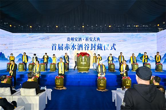 作為本次活動的重頭戲,“祈安大典”更是精彩紛呈。大典分為“入安”“祈·企安”“祈·心安”“見安”和“品安”五個章節,尤其在“祈·企安”環節,貴州安酒頗具創意的將傳統舞蹈劇與安文化相結合,發布了新品癸卯兔年生肖酒和平安如意壇,讓與會人員沉浸式體驗了安酒的本色之美。 此外,祈安大典還舉行了赤水酒谷封藏儀式。貴州安酒001號封藏官姜文由于疫情原因未到現場,其通過視頻方式表達了對封藏的關注和祝賀。在視頻中姜文邀請20位左右嘉賓上臺進行現場封藏,將整個活動氣氛推向了高潮。