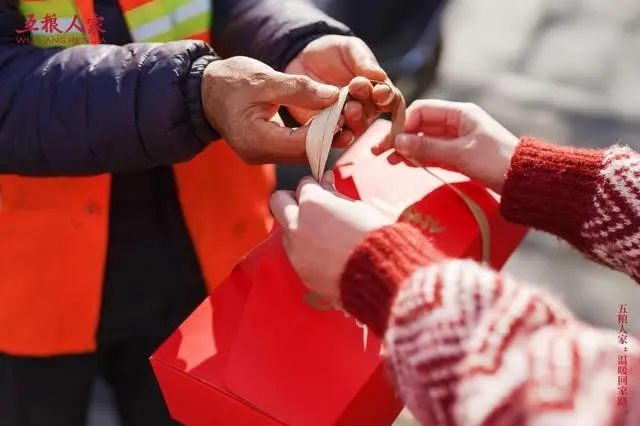 遞溫情,送溫暖。一個個充滿年味的幸福快閃店活動也在六個區域同期展開。現場設置經銷商專區,有折扣優惠、福利抽獎、品酒體驗等內容,還有暖心的郵寄服務。來賓在享受優質購酒服務的同時還能通過拍照打卡免費領取精美明信片,寫下對家人的祝福,連同五糧人家的酒一同寄回家鄉,把祝福傳遞到家人手里。還可以通過掃碼關注經銷商參與抽獎活動,有機會抽中五糧人家精心準備的新年禮盒和福袋盲盒,將五糧人家的“溫暖”與“祝福”帶回家。 此外,五糧人家積極響應社會公益,與各區域經銷商一起為一線工作者送去新年大禮包,向城市英雄致敬。