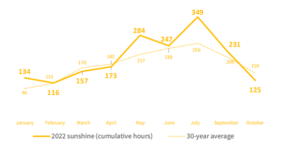 圖:2022年光照 來源:METEO FRANCE Direction Interrégionale Sud Ouest de Bordeaux