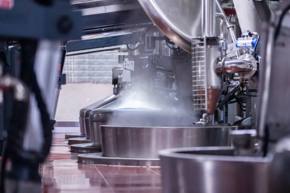 (圖為國臺莊園智能釀造一車間中央控制室) 事實上,國臺數智化釀造并不僅限于酒的生產,成套的智能裝備已經覆蓋了從原材料溯源、制曲、釀酒、倉儲、酒體設計、勾調品鑒到包裝出廠的全產業鏈,實現了潤糧、上甄、摘酒、冷卻、垂直提升、起入窖、攤晾、起堆、撒曲、中控、丟糟等關鍵工序的“機器換人”和連續高效生產。 可以看到,國臺的數智化釀造是基于釀酒工藝的本質而進行的深刻解析、數字表達、精準復刻和系統創新。正如國臺酒業一直堅持的:把一切模糊的清晰化,一切清晰的數字化,一切數字的標準化,一切標準的流程化,一切流程的體系化,把一切體系的法規化,其目的就在于把釀酒弄明白,讓酒喝明白。 四、智能釀造,釀一杯更好的酒! 數智化釀造是在釀酒基本原理作用下,用更加高效、穩定的方式繼承和發揚傳統醬酒釀造。理論上講,智能釀造工藝做到了對全生產流程的精準控制,減少人為干預帶來的風險及誤差,能為酒體帶來更穩定的品質。 事實上也的確如此,智能釀造的探索,并沒有改變大曲醬香型白酒的特質。經過傳統釀造和數智化釀造兩種生產方式的長期跟蹤對比,數智化釀造能出好酒、能更高效地出酒,酒的理化指標、口感、飲后舒適度等也幾乎沒有什么差異,質量更加穩定可控,基酒人均年產能提高 60%,安全生產水平明顯提升。 中國工程院院士孫寶國多次參觀國臺酒智能釀造車間,他認為,白酒生產現代化的核心是數字化,數字化是白酒現代化的核心驅動力,要把釀酒大師的經驗上升到科學,把關鍵控制點變成數據,把控制交給電腦。這方面來講,國臺在生產中設置了數百個控制點,并交給電腦控制,是白酒生產現代化的一個典范。 2023年,貴州省白酒專家代表團專家們一致認為,國臺科學探索智能釀造,酒體干凈度好,輪次酒特點明顯,質量不錯,智能化生產能夠達到傳統工藝要求,智能化生產是未來大曲醬香酒發展的重要方向。