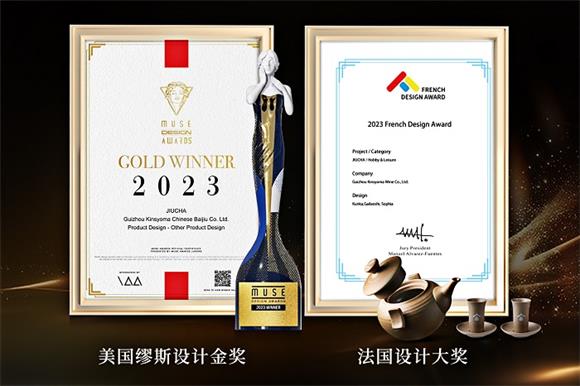 而金絲玉瑪【酒茶醬酒】的高光時刻不僅如此,翻看其獲獎記錄正可謂風光無限。在2023年榮獲的“法國設計大獎”和“美國繆斯設計金獎”則是對金絲玉瑪【酒茶醬酒】創新外觀設計的最高褒獎。在短短的兩年時間便斬獲了國際賽場的三大獎項,不管是對產品品質的肯定還是外觀設計的認可都是對貴州金絲玉瑪酒業極大的鼓舞。