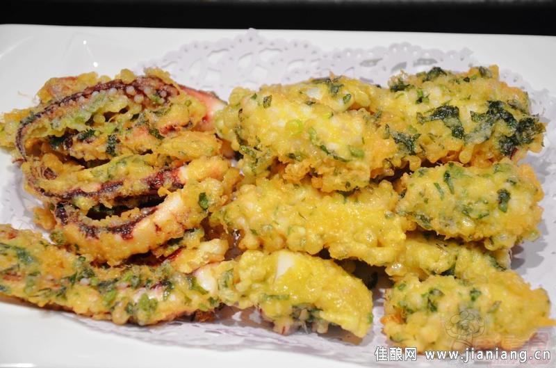 香椿是一種時令食材,只有春季我們才能嘗一口鮮。香椿含有極豐富的營養。據分析,每100克香椿頭中,含蛋白質9.8克、含鈣143毫克、含維生素C115毫克,都列蔬菜中的前茅。另外,還含磷135毫克、胡蘿卜素1.36毫克,以及鐵和B族維生素等物質。下面佳釀網小編教大家用香椿炸魷魚,二者結合口感更加鮮美。