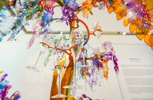 通過對巴黎之花“美麗時光之家”(Maison Belle Epoque)的探訪,藝術家在創作中借鑒了宅院內拱形木門、彩色玻璃窗的絢麗色調以及“新藝術”運動先驅Emile Gallé于1902年為巴黎之花所設計的標志性銀蓮花圖案。同時,她也從香檳釀造過程中獲取靈感,打破自然造物與現代工藝之間的壁壘,設計并完成了為品牌全新創作的藝術作品“自然之上”。
