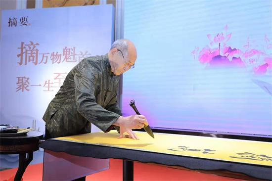 著名書法家、中國書畫協會理事,張大千親傳弟子虛谷老師 “摘要”文化本就有取精華,聚賢之意。著名書法家、中國書畫協會理事,張大千親傳弟子虛谷老師,親臨活動現場,揮毫潑墨“摘萬物魁首、聚一生至要”,并為在場嘉賓書寫福字,表達祝福之意?,F場嘉賓無不感嘆虛谷老師書法功底的深厚和強大的摘要文化感召力。