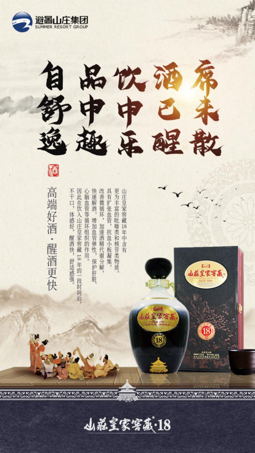 古往今來,酒對于中國人而言,不僅是一種飲品,更是一種文化和社交活動。 縱覽華夏九州,盡管文化傳承、生活習慣甚至飲食愛好各不相同, 但是,酒不約而同地誕生于世,流淌了成千上萬年。 文人墨客曲水流觴,吟風頌雅,酒香浸透筆墨, 借由酒的醉意,飲酒作賦,留下數不盡的華麗篇章千古流芳。 流光一瞬,華表千年。穿過歷史煙云,從留存至今的古物傳奇中, 我們得以穿越時空,窺見流傳千年的濃烈酒香與豪情壯志。 而今, 山莊集團,匠心傳世始于不懈追求,高端品質源于潛心釀造,用光陰鍛造上蘊瓊漿。 山莊皇家窖藏18年如颯沓流星而至,出道即高光,盡顯皇家窖藏王者風范。 窖藏18年·酒之本 得天獨厚,佳釀天成。 得天獨厚,佳釀天成。窖藏18年在品質上擁有絕對話語權。 “水為酒之血” 名酒必有佳泉,山莊皇家窖藏18年所選280米深儀狄古井中從未蒙塵的深層巖石裂隙水,富含鍶、碘、硅、鈣等有益微量元素和礦物質,基酒存儲于“會呼吸的陶罐”中,恒溫恒濕環境下陶壇儲存至少18年的基酒調制而成,終釀得酒中之佳品皇家窖藏18年。 “糧為酒之肉” 山莊皇家窖藏18年以五種原糧,采用高粱、大米、糯米、小麥、玉米五種糧食黃金科學配比,形成獨特的風味,并且在距今已有300余年歷史且富含千余種不可復制微生物種群的老窖池中釀造,具有聞香更優雅、入口更綿柔、回味更爽凈、飲后更舒適的品質。 窖藏18年·酒之品 席未散,酒已醒,飲中樂、品中趣,自舒逸 歲月失語,惟石能言。糧谷歷經時間積淀,發酵升華,才能成為酒之佳釀。 山莊集團與天津科技大學科研團隊深度合作,定向研究培養菌種,使得山莊皇家窖藏18年中含有更為豐富的吡嗪類和核苷類物質。 其中吡嗪類物質具有擴張血管、抗血小板凝集、改善微循環等作用,飲酒后不口干,醒酒快,舒適感強。 而核苷類物質含有十數種有益人體的微量元素,不但能賦予酒獨特的滋味,還可以激發乙醇脫氫酶和乙醛脫氫酶的活性,加速酒精代謝分解,快速解酒,并可以清除血液中毒素和乙醇代謝產生的自由基,起到增加血管彈性,保護肝臟、心腦血管等循環組織的作用。因此在飲入山莊皇家窖藏18年的一段時間后,體感好,不上頭,身心愉悅。 窖藏18年·酒之真味 四好和一,高端好酒,醒酒更快 皇家有佳釀,窖藏18年。 皇家窖藏18年取五谷之精華,純糧釀造,質樸淳珍、俯仰皆香,在時光洪波中流轉出同光十三絕的滟滟光影。 基因好 純糧釀造,固態發酵 綠色有機,匠心釀造 口感好 口味豐滿、入口綿甜凈爽, 喝完回味無窮 體感好 不口干、不難受、無刺激感,飲后不影響第二天上班。 健康感好 發酵周期長,降低對人體的損害,提高對人體有益物 窖藏18年·酒之意 一杯18年,品盡人生味 白酒給予人感官的刺激引發飲者更高層面的精神共振, 令飲者的精神愉悅,融情于酒,因酒生情, 正如“醉翁之意不在酒,在乎山水之間也”這種天地人和的美妙感受。 此時酒中有人,人中有酒,這是酒的最高境界,與酒牽絆的是家人、親戚,朋友之間的親密感情, 酒與人融為一體。 時至今日,酒早已融入人們的生活之中,賜予了生活濃厚的文化氣息。 過年喝酒,這是傳統。 團圓佳之時 好酒陳釀盡顯情誼。 “守歲樽無酒,思鄉淚滿巾。”古人飲酒早已蔚然成風,反映過年喝酒的詩句也是數不勝數。 中國酒文化伴隨著人類文明一直不斷發展,各朝各代都有自己不同的喝酒方式。古人尤其喜歡在過年時喝酒,過去甚至還有“無酒不成禮”的說法,尤其是在春節、祭祀和慶典活動時更是如此。 商務宴請高端體面。 彰顯的不僅僅是地位,更是品味。 窖藏18年,不論是其優越的口感風味,還是皇家華貴包裝,都讓高端宴請更加“體面”。 可謂商務聚會必備佳品,彰顯公司實力的同時,將合作誠意赫然體現。 家庭聚會的極佳選擇。 美酒中詮釋愛的定義。 無酒不成宴,老人過壽,孩子滿月,碰了這杯,團聚才真正拉開了序幕。中國人對幸福的定義并不復雜,“甘其食,美其服,安其居,樂其俗”,能吃好喝好,家庭聚會必備,連接情誼,感受溫暖。一家人在美酒美食下團聚便是美滿。 友人相聚,把酒言歡。 好友對飲,推杯換盞,話知己,論天涯。 偷得浮生半日閑,以酒會友,越陳越香,亦友亦酒,濃郁醇香。 與友人隔桌對坐,碰杯暢飲,談天說地,小到青梅往昔一一細數,大到社會政事侃侃而談,敞笑不止。飲上一小杯,把酒話舊,隨時間流逝變得越發清冽,歷久彌香。 窖藏18年·酒之風雅 高端好酒,碩果累累 窖藏18年代表河北皇家白酒濃香高端好酒, “皇帝喝的好酒”,盡顯工匠精神和技藝傳承, 具有品質高、口感好、檔次高、價格優的特點, 是在同檔次白酒中超高性價比的選擇。 2015年, 榮獲中國白酒專家委員會特別獎。 2017年, 中國白酒國家評委感官質量獎。 2018年, 榮獲中國白酒青酌獎。 山莊皇家窖藏18年的過硬品質,具有強大的核心競爭力,多重價值賦能, 讓山莊集團擁有更廣闊的成長空間,代表了山莊集團邁向高質量發展新征程, 承載著山莊集團遠大的戰略夢想。 杯盞之間,方寸世界,風塵之事攪著酒,伴著香韻入了喉。 品人生滋味,感世間百態。生生不息,鳴歌傳承。 一杯窖藏18年,足以慰風塵。 |