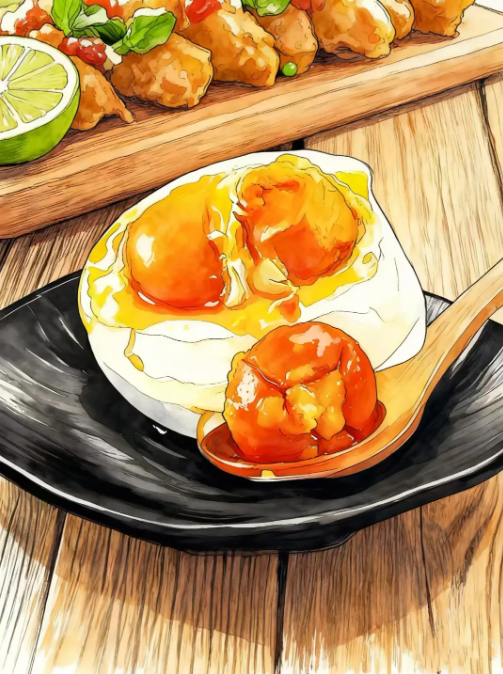 腌制咸鴨蛋的方法很多,首先是鹽水法。 將鴨蛋完全浸入飽和鹽水中,利用滲透壓原理,鹽分由外向內緩慢進入。優點是咸度均勻,操作簡單,適合量產;缺點是風味單一,蛋黃出油較慢,且易因溫度波動導致蛋白過咸。 最具古法的耐心與層次的腌制方法是黃泥/草木灰裹覆法。取優質黃泥或草木灰,加鹽、酒、香料拌勻,包裹鴨蛋,密封于陶壇。此法有三大妙處:1.密封性好:泥層隔絕空氣,防止腐敗;2.滲透緩慢:鹽分通過泥層一點點滲入,風味更柔和;3.酒香增韻:米酒揮發,賦予蛋體淡淡酒香。 這是前工業時代的智慧——用泥土做“時間濾鏡”,讓變化從容發生。腌制咸鴨蛋的教程講完了,我們開始講講科普:為什么咸鴨蛋會“起沙流油”? 一個形象的比喻就是:咸鴨蛋的誕生其實就是蛋白質與脂肪的“宮廷政變”。 簡單說,是蛋白質凝固與脂肪析出的雙重作用:腌制過程中,鹽分使蛋清中的蛋白質脫水凝固,質地變細嫩;同時,鹽破壞了蛋黃中脂蛋白的穩定性,導致脂肪顆粒聚集、析出;長時間靜置后,脂肪融合成油,蛋白質則形成細沙狀結構——這便是“沙”與“油”的由來。 而加熱,則是最后的“點睛之筆”。高溫讓凝固的脂肪徹底液化,紅油噴涌而出,成就那一聲動人的“吱——”。 一枚咸鴨蛋,是水土的結晶,是時間的杰作,更是中國人對“鮮”的執著守望。它不喧嘩, 卻以一口紅油,告訴你:最好的味道,從來不在舌尖,而在江河湖海的呼吸里,在歲月靜好的等待中。 |